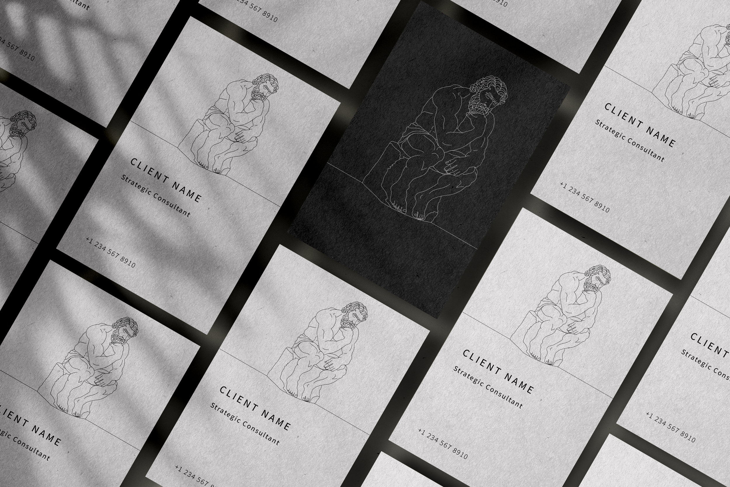 Rooted in reflection and clarity, this identity was built around a custom linework illustration inspired by classical sculpture.